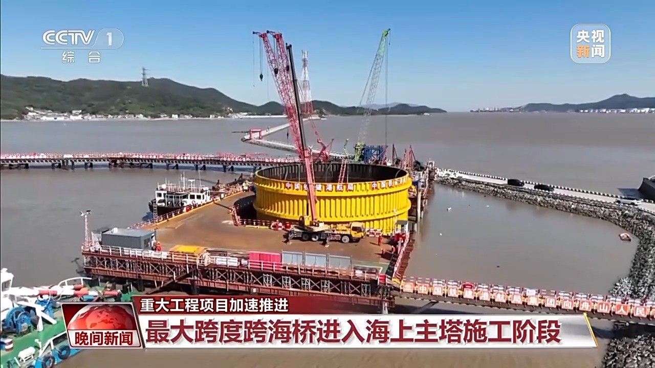 国内最大跨度跨海桥正式进入海上主塔施工阶段