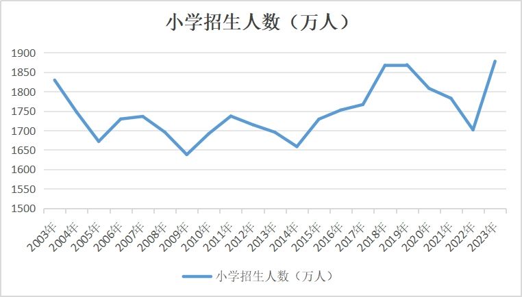 教育部近日发布的数据显示,2023年,全国小学招生1877.88万人,比上年增加176.5万人,增长10.37%;在校生1.08亿人,比上年增加103.97万人,增长0.97%。