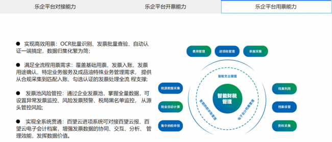 作为国家税务总局电子发票服务平台供应商,百望云依托在数字化票据领域积累的核心优势,推出数电乐企一体化解决方案,向符合接入乐企数字开放平台资质的企业提供一站式接入及涉票服务,满足纳税人多场景、规模化、合规化、自动化涉票业务。由金四项目专家指导,无缝衔接最新政策要求,快速对接乐企平台,为企业规避风险,降低成本,提高财务数字化管理及服务效率。