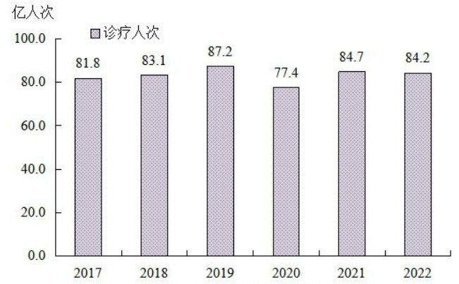 2022年,全国医疗卫生机构总诊疗人次较上年微幅下降 图片来源:国家卫健委